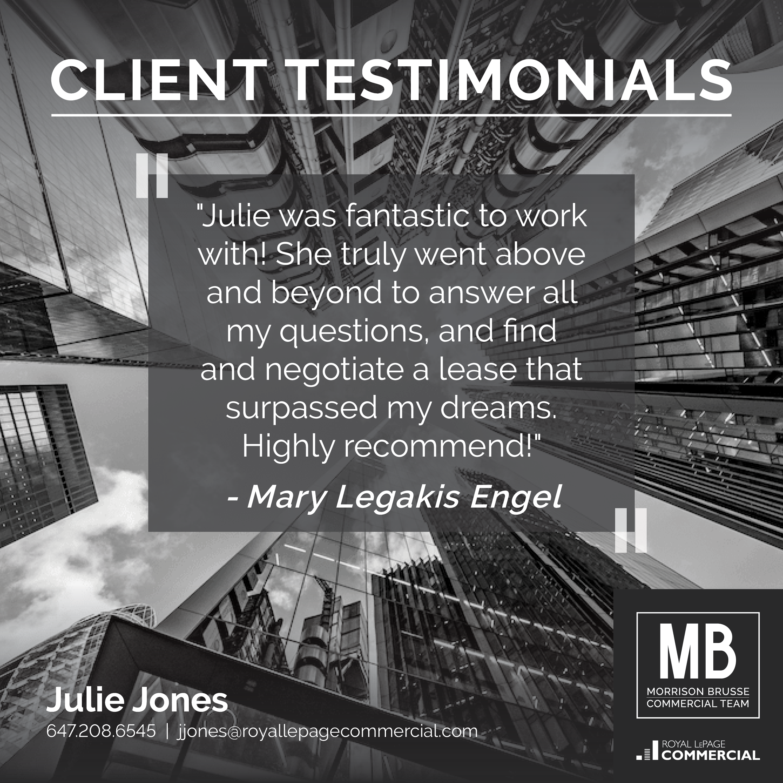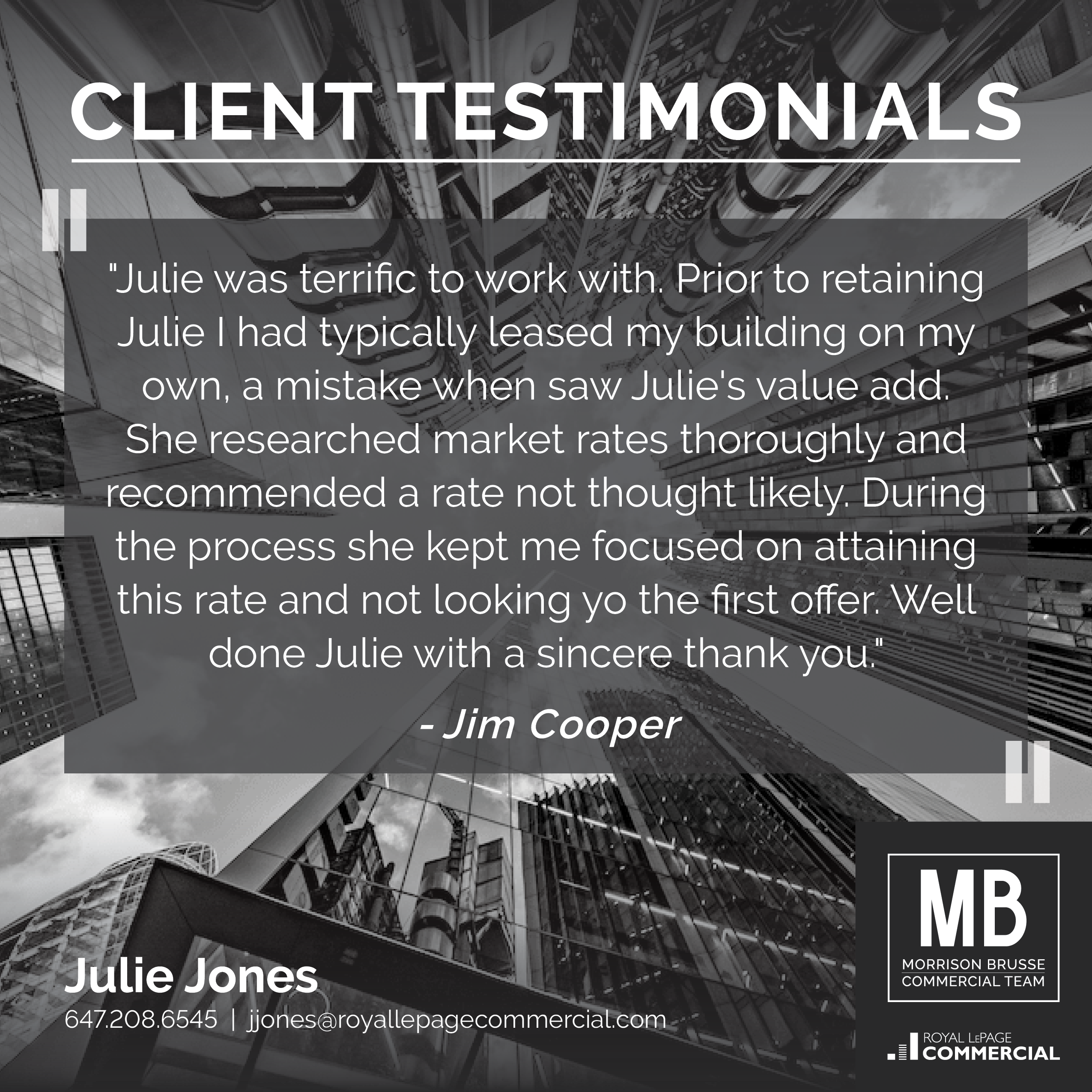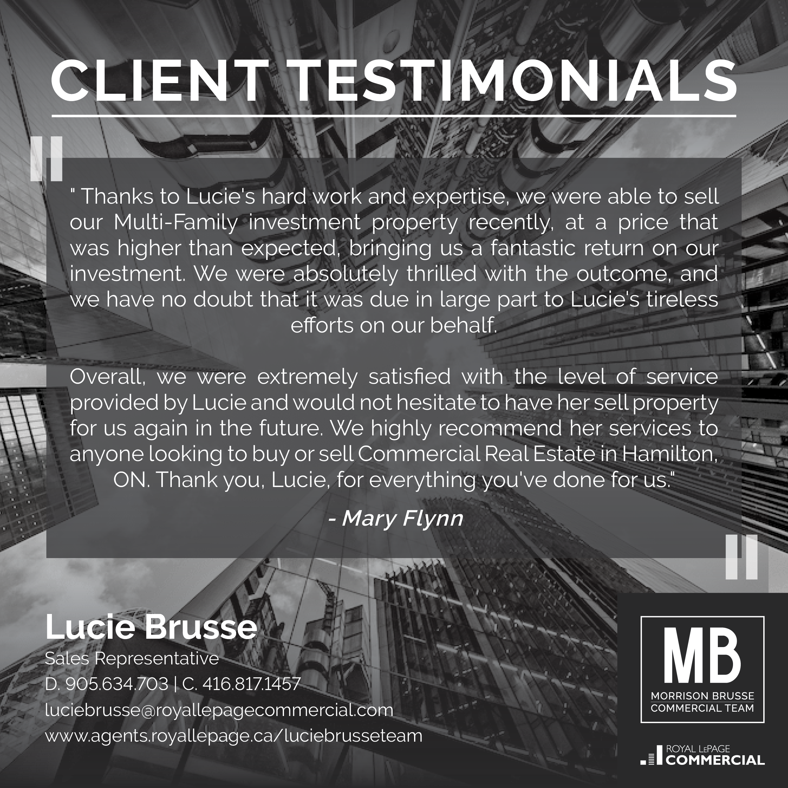 "In summary, our experience with Paul Morrison and Royal LePage Commercial was a very positive one and we look forward to working with Paul again as our business continues to grow and the probability of expansion increases.